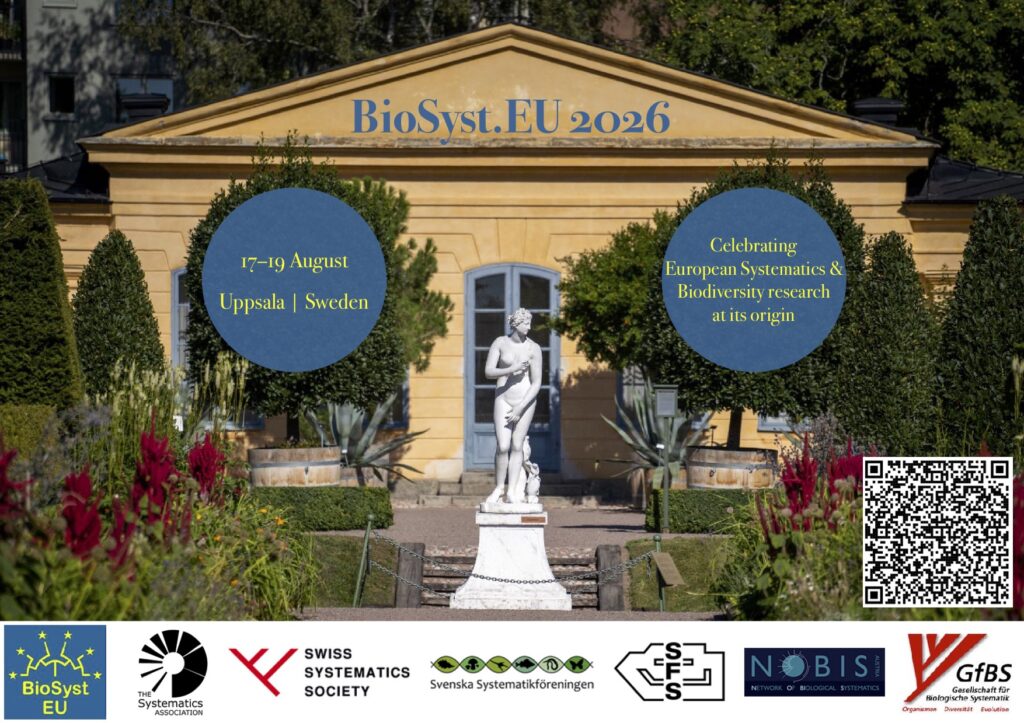 * Registration is now open * for the 4th European Systematics meeting (BioSyst.EU) to be held in Uppsala, Sweden, 17–19 August 2026. The meeting is hosted by Uppsala University and the Swedish Systematics Society, in partnership with the Swiss, German, Austrian, French and UK societies, as well as the Swedish Species Information Centre (Artdatabanken) and Wallenberg and SciLifeLab Programme for Data Driven Life Science (Evolution and Biodiversity).